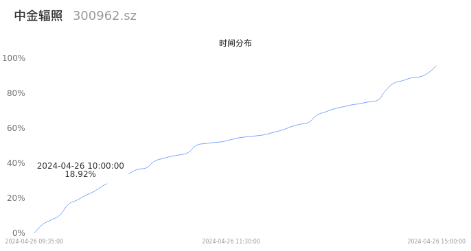 300962中金辐照2024年04月26日成交3.92万手,成交金额5860.12万元,相较昨日放量6728手,换手率1.48%,成交清淡。