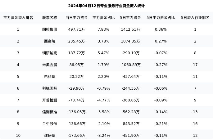 从主力资金流向来看,专业服务行业今日主力资金流入4.74亿元,在所有申万二级行业中排名:107/131。