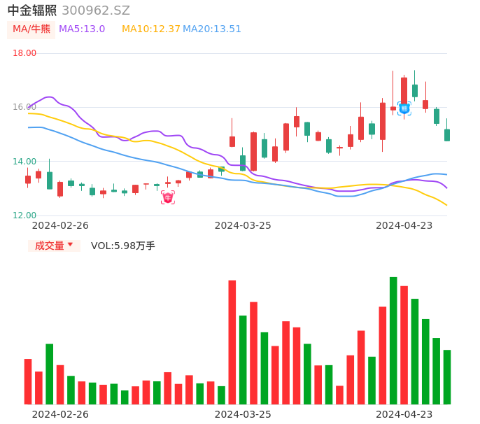 中金辐照近期出现日线级别熊点,且60分钟级别也处于熊点区间,股价处于偏弱行情,建议谨慎观望。