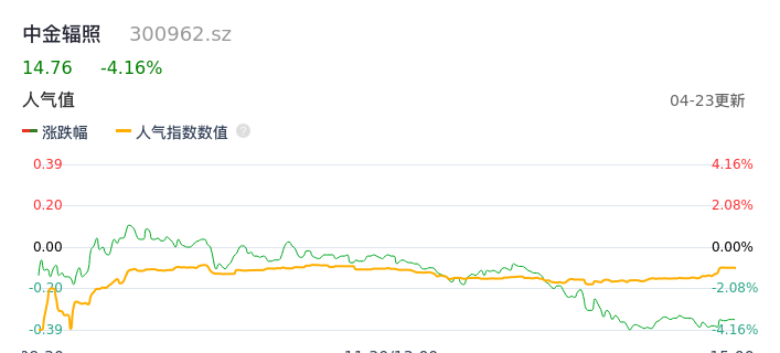 04月23日,中金辐照收报14.76,股价涨幅-4.16%,成交金额9045.75万元,换手率2.27%。