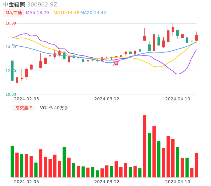 04月10日,中金辐照收报14.99,股价涨幅3.24%,成交金额8087.41万元,换手率2.04%。