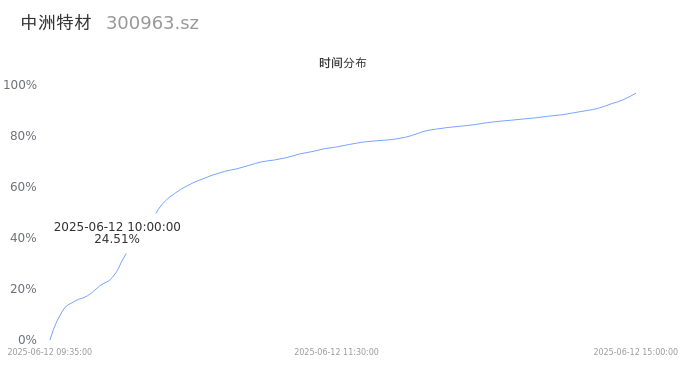300963中洲特材2025年06月12日成交76.90万手,成交金额19.40亿,相较昨日放量19.05万手,换手率26.57%,成交活跃。