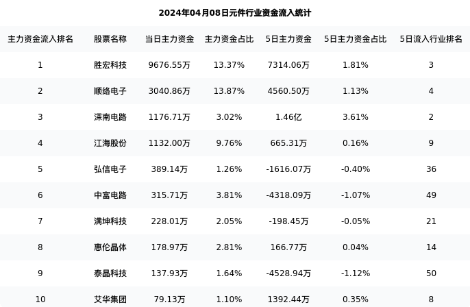 从主力资金流向来看,元件行业今日主力资金流入23.80亿元,在所有申万二级行业中排名:46/131。