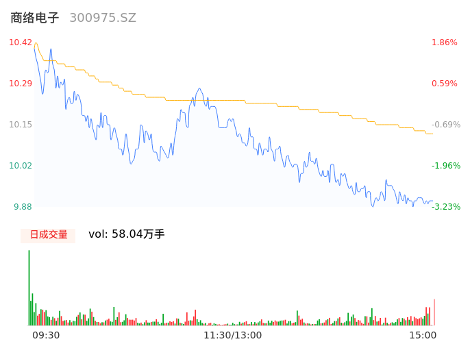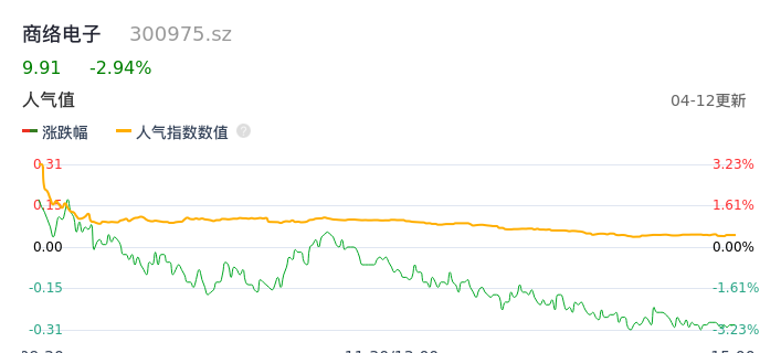 04月12日,商络电子收报9.91,股价涨幅-2.94%,成交金额5.87亿元,换手率16.11%。