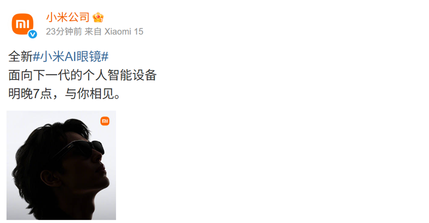 今日(6月25日),小米正式揭秘:“面向下一个时代的个人智能设备”为小米AI眼镜。