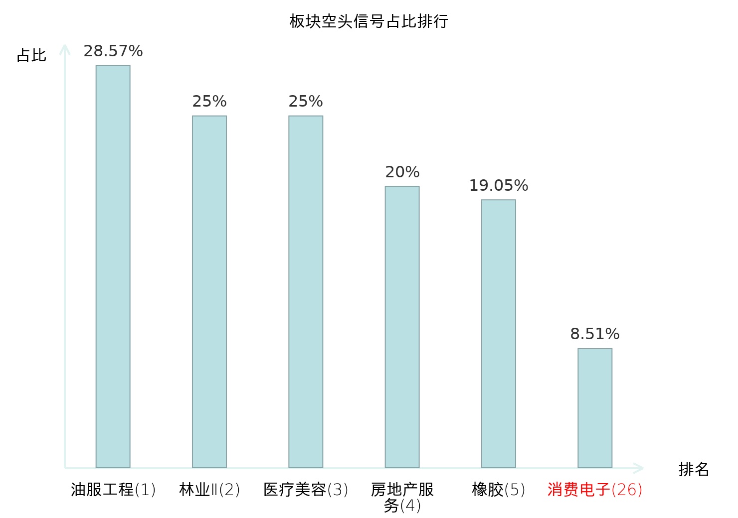 全市场所有行业板块中主力空头信号占比排名中,油服工程板块位居第一。炼化及贸易板块名次提升最快,较昨日上升102位。