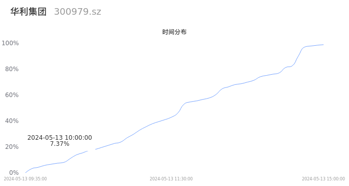 300979华利集团2024年05月13日成交4.29万手,成交金额3.01亿元,相较昨日放量2.34万手,换手率0.37%,成交清淡。