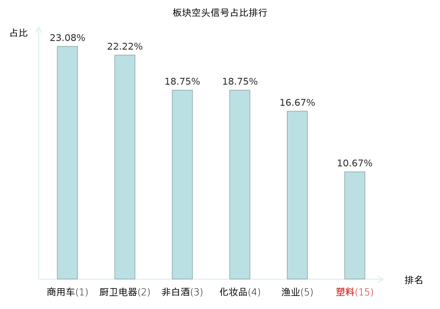 全市场所有行业板块中主力空头信号占比排名中,商用车板块位居第一。环保设备Ⅱ板块名次提升最快,较昨日上升96位。