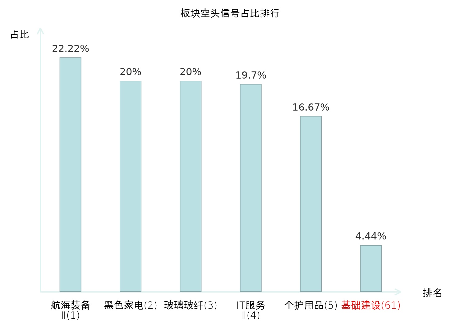 全市场所有行业板块中主力空头信号占比排名中,航海装备Ⅱ板块位居第一。纺织制造板块名次提升最快,较昨日上升107位。