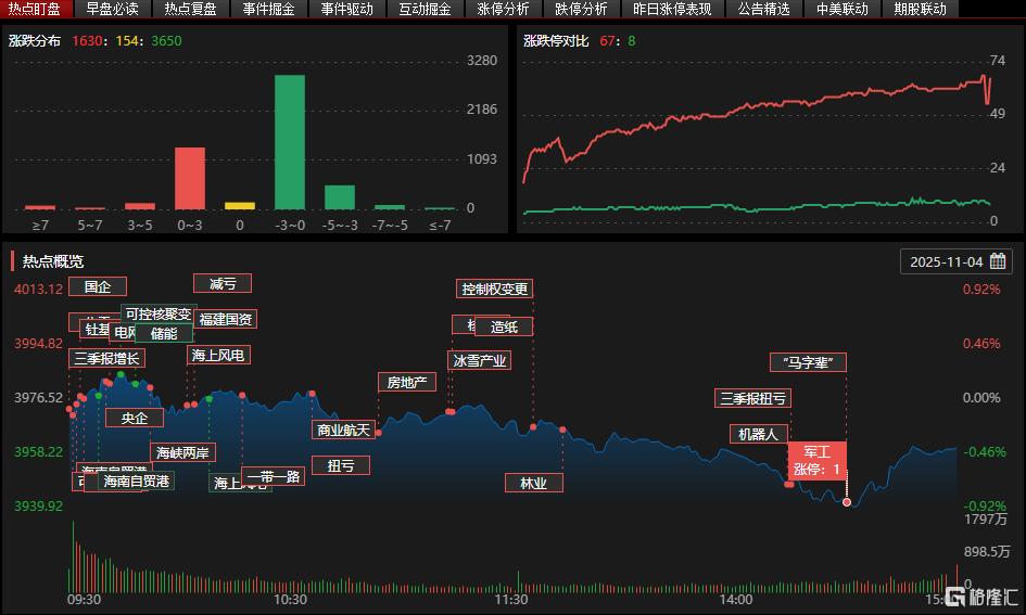 11月4日,A股三大指数集体下跌,全市场成交额1.94万亿元,较前一交易日缩量1945亿元。