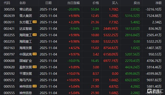 宁波桑田路:净买入超颖电子3788万元,净卖出海陆重工8661万元、海南发展8128万元、宝色股份3590万元。