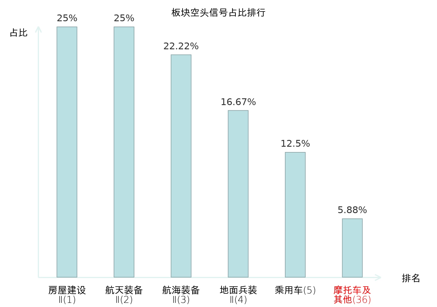 全市场所有行业板块中主力空头信号占比排名中,房屋建设Ⅱ板块位居第一。食品加工板块名次提升最快,较昨日上升110位。