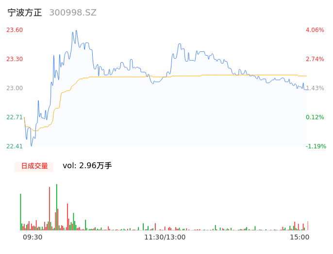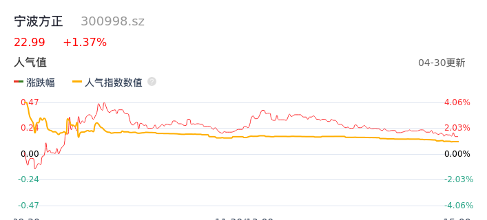 04月30日,宁波方正收报22.99,股价涨幅1.37%,成交金额6845.38万元,换手率4.50%。