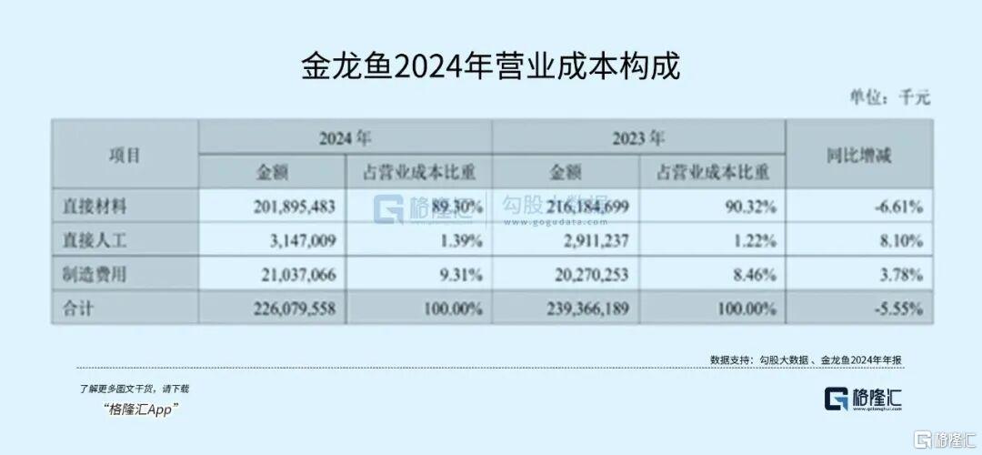 以金龙鱼为例,在其2024年2388.66亿元的总营收中,营业成本达到了2260.80亿元,占比达94.65%。