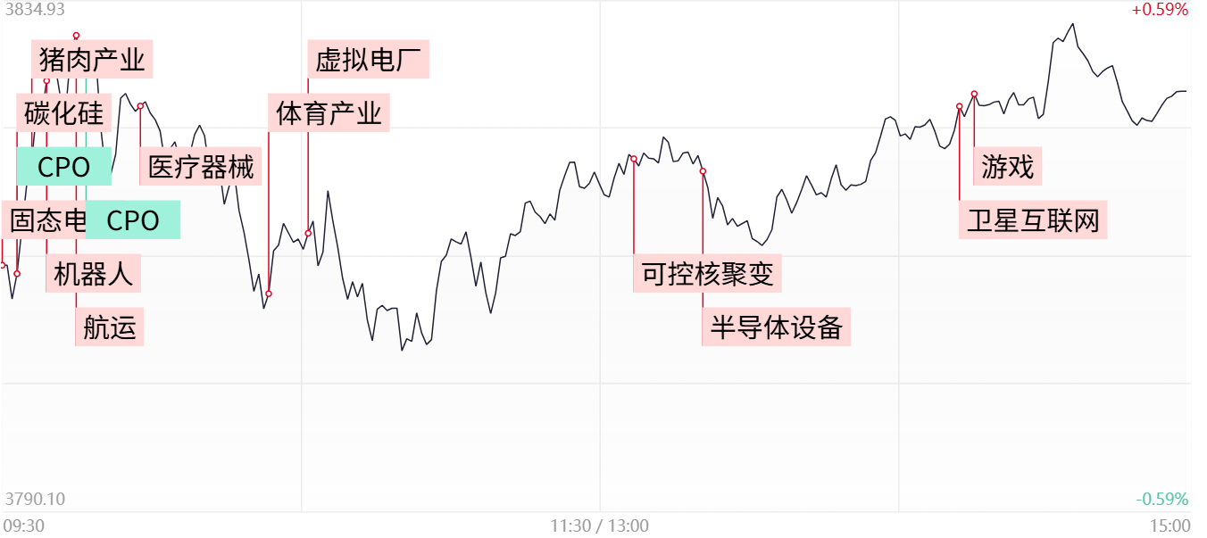 财联社9月8日讯,市场全天震荡分化,三大指数涨跌不一。沪深两市成交额2.42万亿,较上一个交易日放量1141亿。盘面上,市场热点较为杂乱,个股涨多跌少,两市超3900只个股上涨。从板块来看,机器人股表现活跃,三花智控涨停。固态电池板块震荡拉升,天际股份三连板。卫星互联网概念午后异动上涨,中国卫星涨停。下跌方面,算力硬件股大跌,新易盛跌近10%。截至收盘,沪指涨0.38%,深成指涨0.61%,创业板指跌0.84%。