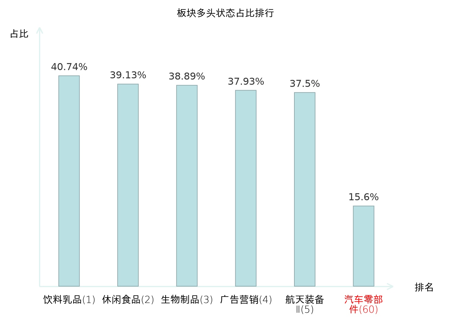 全市场所有行业板块中主力多头状态占比排名中,饮料乳品板块位居第一。国有大型银行Ⅱ板块名次提升最快,较昨日上升71位。