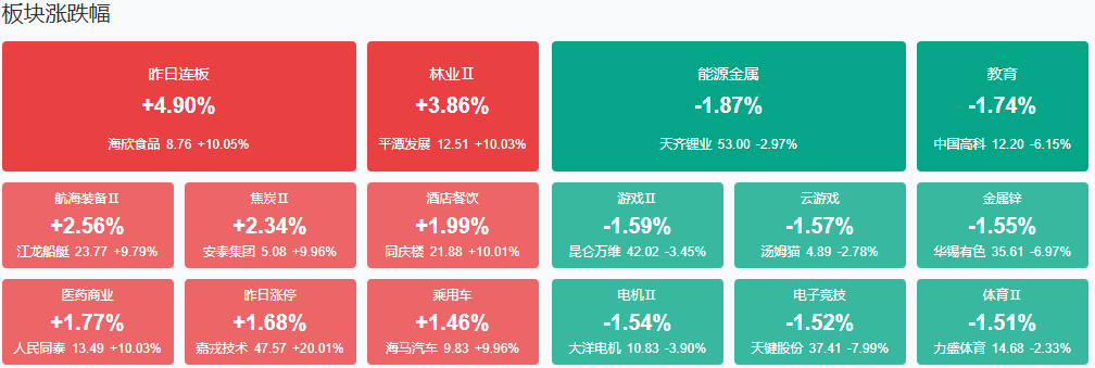 板块方面,医药商业、福建、海南等板块涨幅居前,电池、有色金属、影视院线等板块跌幅居前。截至收盘,沪指跌0.55%,深成指跌0.77%,创业板指跌0.88%。