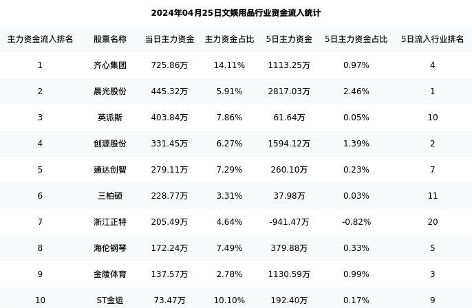 从主力资金流向来看,文娱用品行业今日主力资金流入1.32亿元,在所有申万二级行业中排名:117/131。