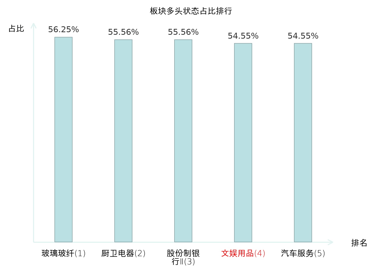 全市场所有行业板块中主力多头状态占比排名中,玻璃玻纤板块位居第一。航天装备Ⅱ板块名次提升最快,较昨日上升84位。