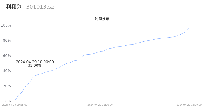 301013利和兴2024年04月29日成交11.74万手,成交金额1.43亿元,相较昨日缩量3791手,换手率7.06%,成交清淡。