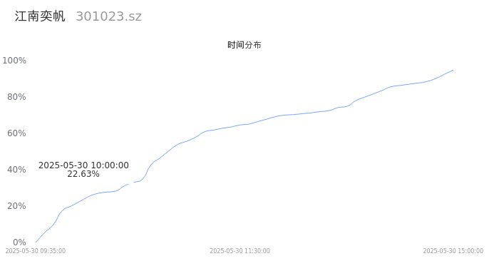 301023江南奕帆2025年05月30日成交2.44万手,成交金额1.08亿,相较昨日放量1873手,换手率5.86%,成交清淡。