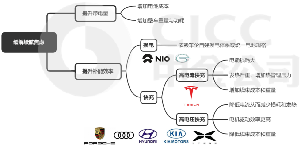 图:改善续航、提升补能效率的各种方案对比及代表车企