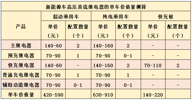 (4)高压直流继电器:性能要求提升,附加值增加;
