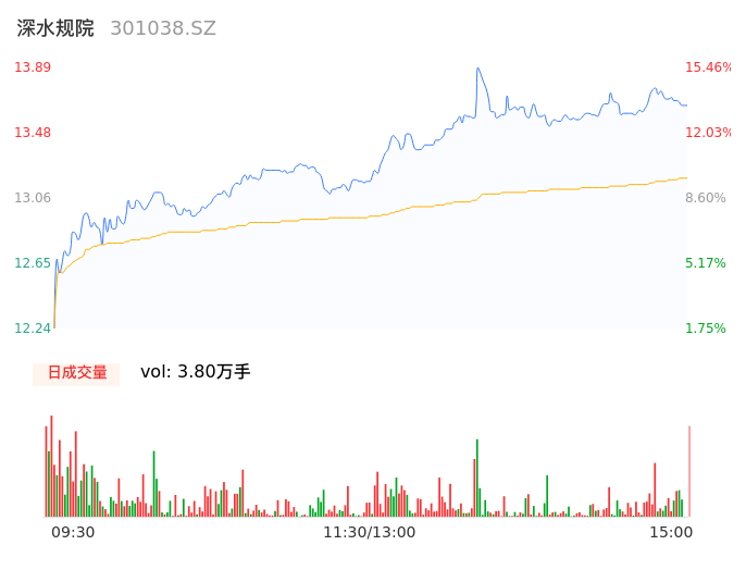 04月17日,深水规院收报13.70,股价涨幅13.88%,成交金额5013.70万元,换手率7.70%。