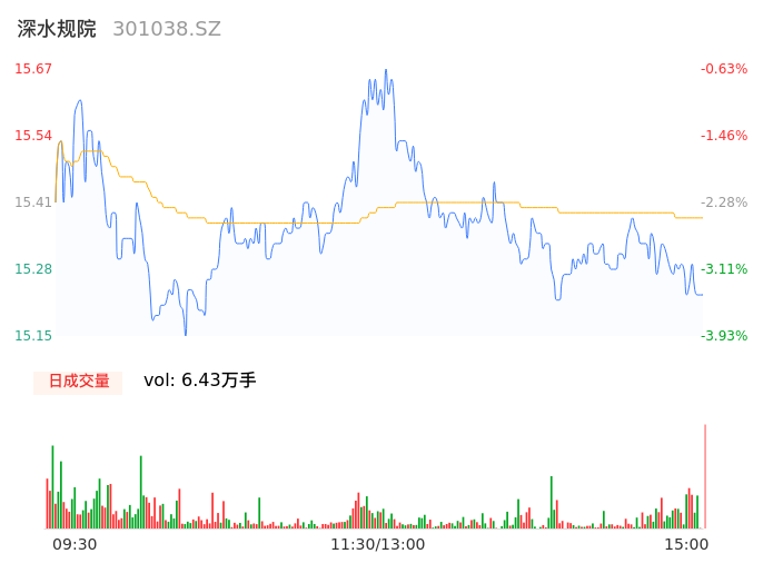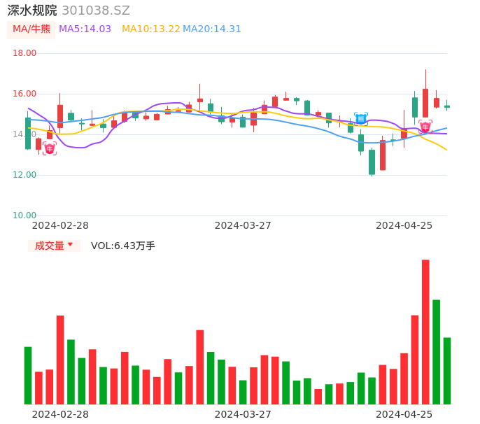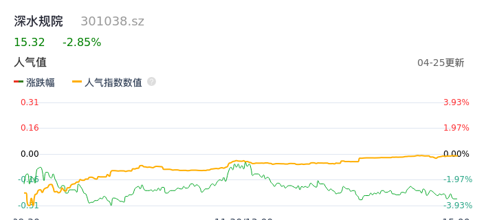 04月25日,深水规院收报15.32,股价涨幅-2.85%,成交金额9879.99万元,换手率13.03%。