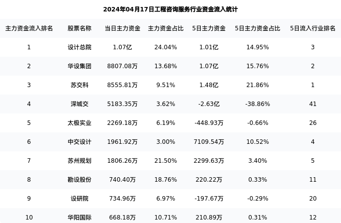 从主力资金流向来看,工程咨询服务行业今日主力资金流入25.83亿元,在所有申万二级行业中排名:115/131。