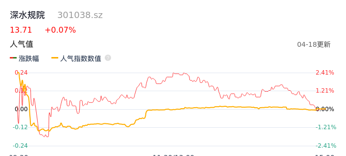 04月18日,深水规院收报13.71,股价涨幅0.07%,成交金额4710.42万元,换手率6.92%。