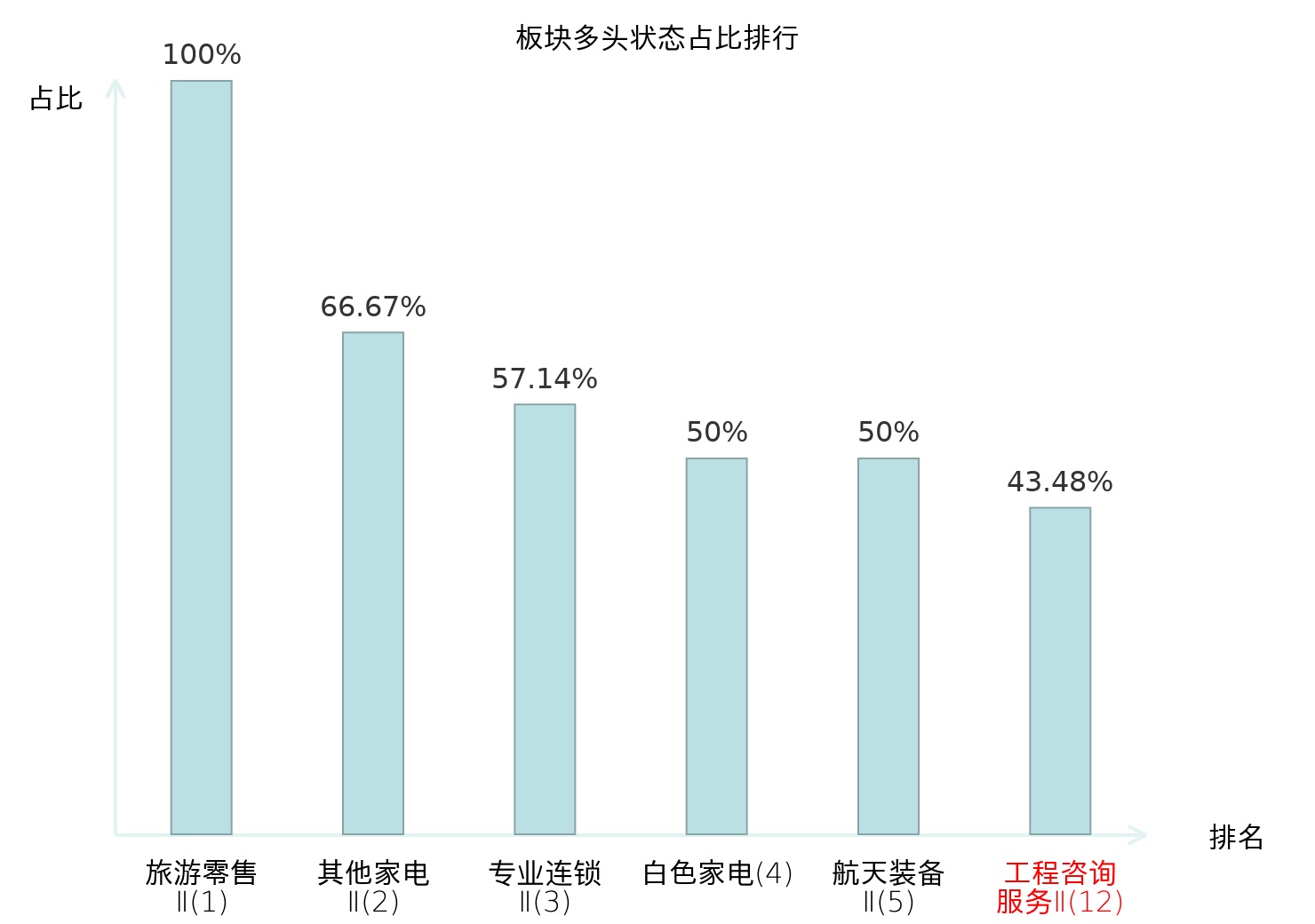 从主力宝信号数据分析,深水规院所属的工程咨询服务Ⅱ板块中共有20只股票处于主力多头状态,主力多头状态占比在全行业中排名第12位,较昨日上升1位。较高的排名表明主力对板块整体看多意愿较强,此次排名上升进一步反映了主力对 sector 的积极态度。全市场所有行业板块中主力多头状态占比排名中,旅游零售Ⅱ板块位居第一。股份制银行Ⅱ板块名次提升最快,较昨日上升79位。这些变动揭示了不同行业间主力资金偏好的变化,为投资者提供了关于市场情绪和潜在投资机会的重要线索。