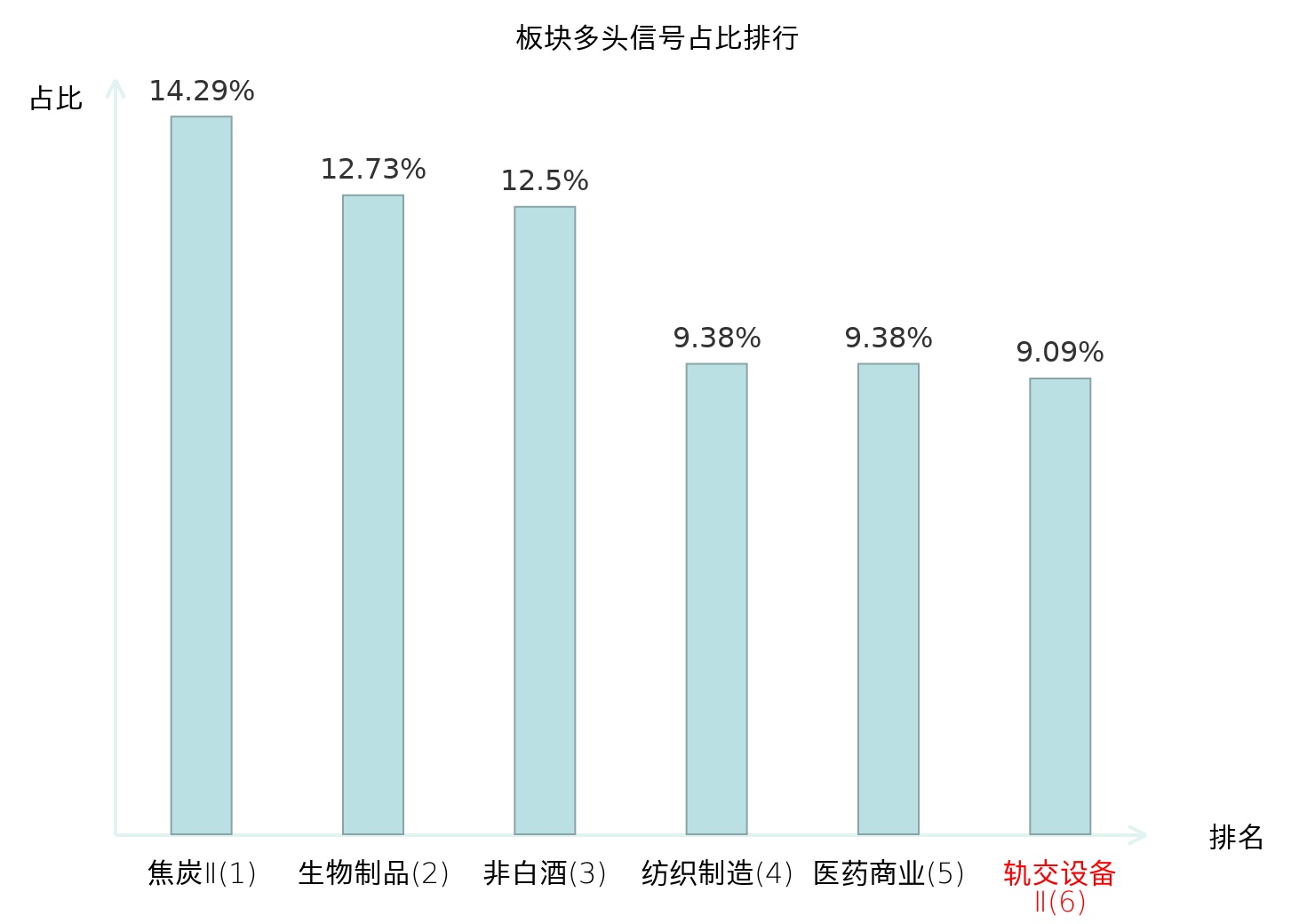 全市场所有行业板块中主力多头信号占比排名中,焦炭Ⅱ板块位居第一。焦炭Ⅱ板块名次提升最快,较昨日上升120位。