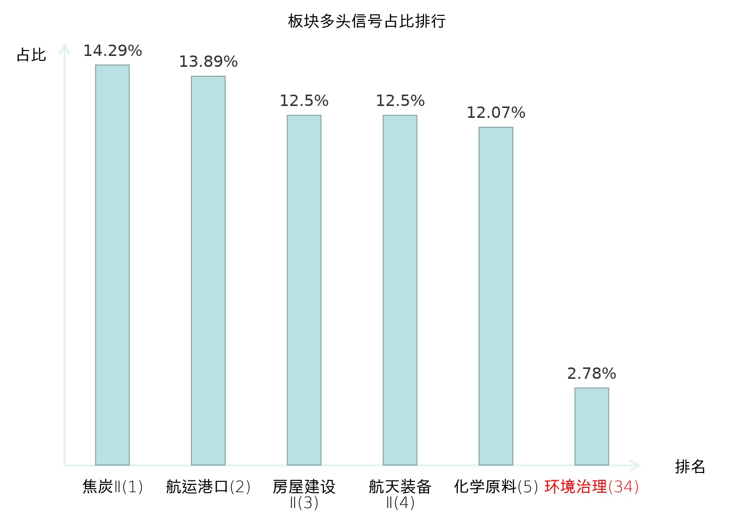 全市场所有行业板块中主力多头信号占比排名中,焦炭Ⅱ板块位居第一。焦炭Ⅱ板块名次提升最快,较昨日上升120位。