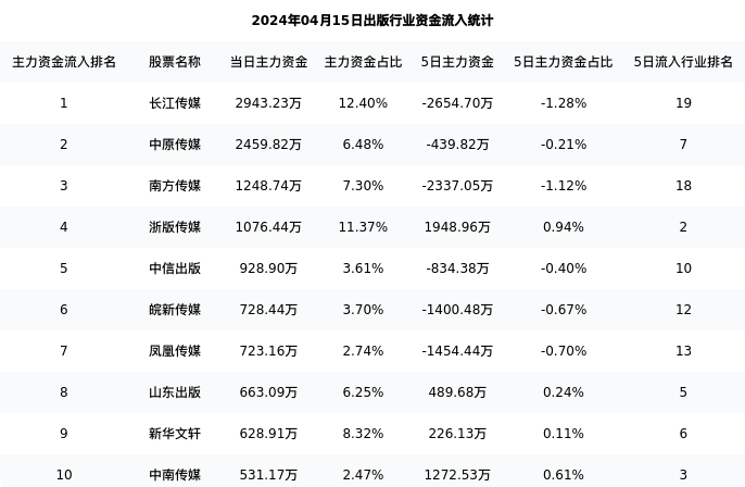 从主力资金流向来看,出版行业今日主力资金流入16.61亿元,在所有申万二级行业中排名:32/131。