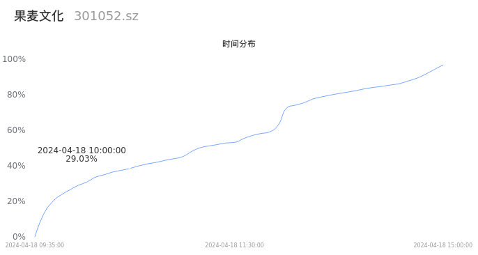 301052果麦文化2024年04月18日成交8.69万手,成交金额2.30亿元,相较昨日缩量947手,换手率11.65%,成交活跃。