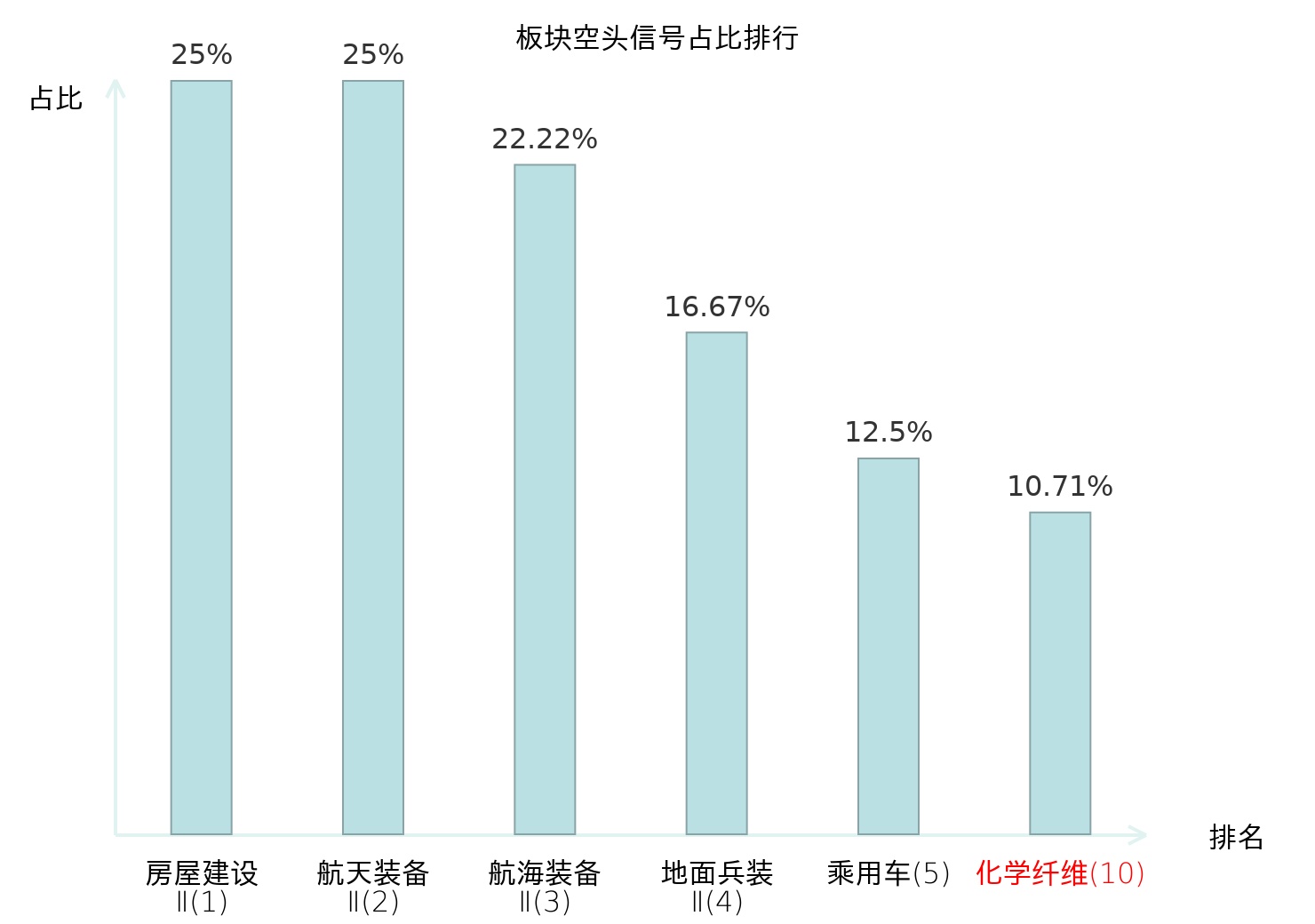 全市场所有行业板块中主力空头信号占比排名中,房屋建设Ⅱ板块位居第一。食品加工板块名次提升最快,较昨日上升110位。