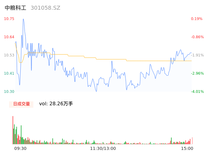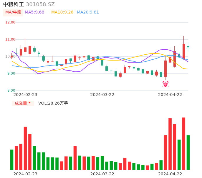 04月22日,中粮科工收报10.54,股价涨幅-1.77%,成交金额2.96亿元,换手率13.89%。