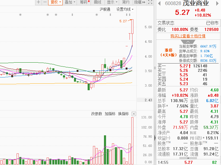 市场情绪:权重指数站稳脚,中小盘指数活跃,人工智能、机器人板块再度活跃,引领科技反弹;个股涨多跌少,全市场超3500只个股上涨。今日共59股涨停,连板股总数6只,26股封板未遂,封板率为69%(不含ST股、退市股)。焦点股方面,化工板块反复活跃,红墙股份9天6板,永安药业与先达股份7天5板;午后零售板块反弹,茂业商业走出地天板晋级4连板,人气股步步高也一度上演地天板但最终炸板回落。