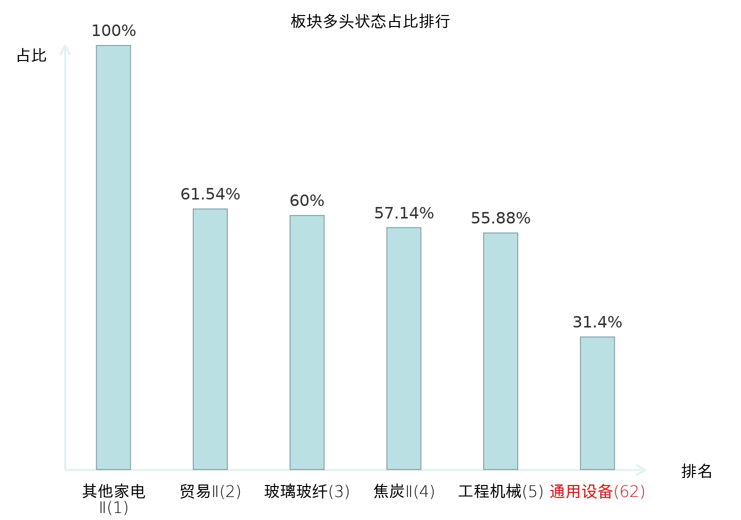 全市场所有行业板块中主力多头状态占比排名中,其他家电Ⅱ板块位居第一。航海装备Ⅱ板块名次提升最快,较昨日上升98位。