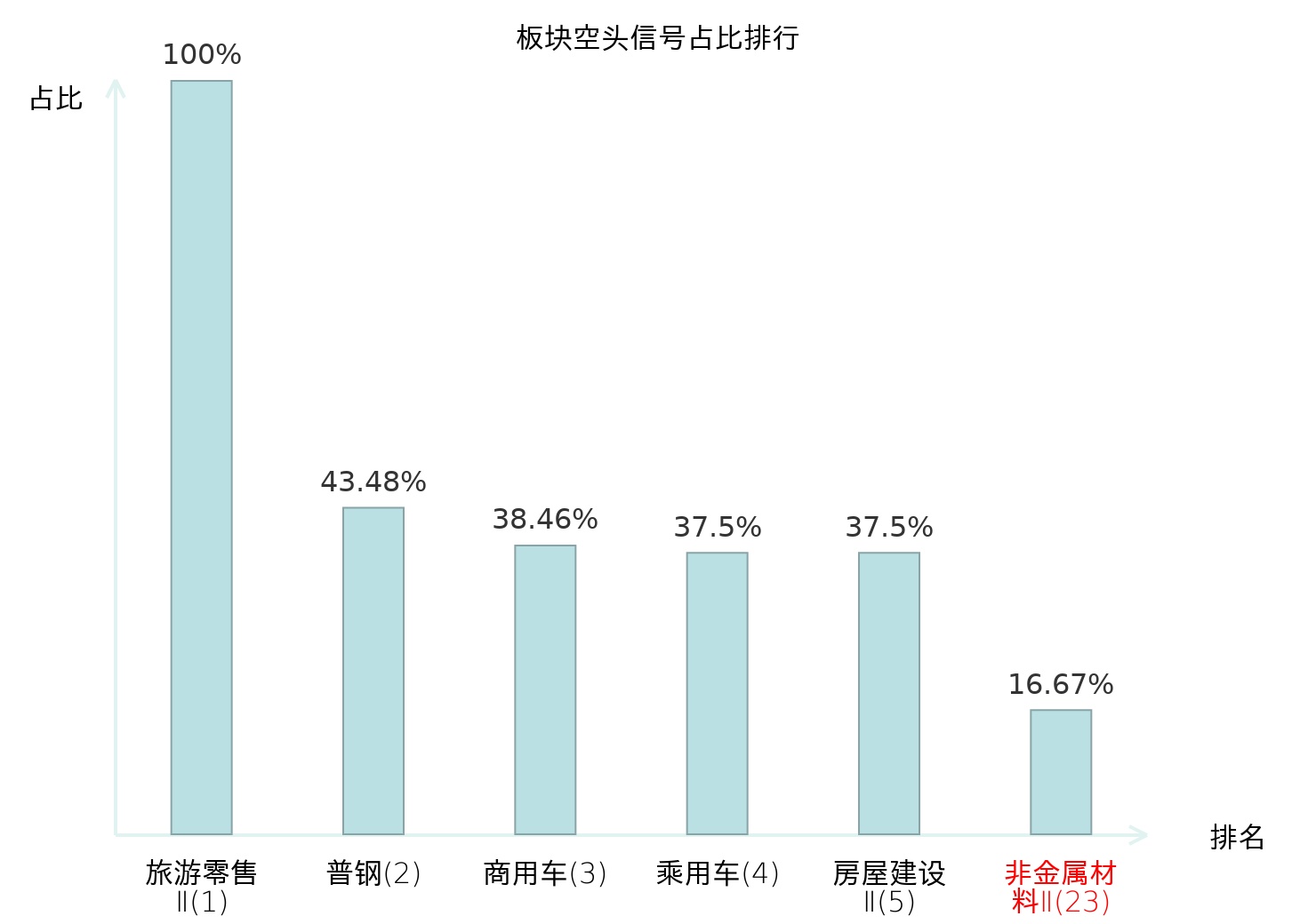 全市场所有行业板块中主力空头信号占比排名中,旅游零售Ⅱ板块位居第一。普钢板块名次提升最快,较昨日上升114位。