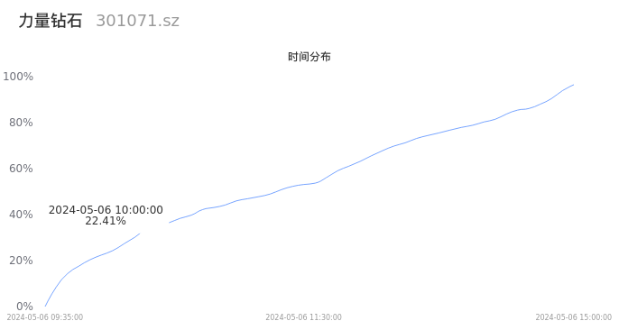 301071力量钻石2024年05月06日成交5.58万手,成交金额1.90亿元,相较昨日放量7836手,换手率4.28%,成交清淡。