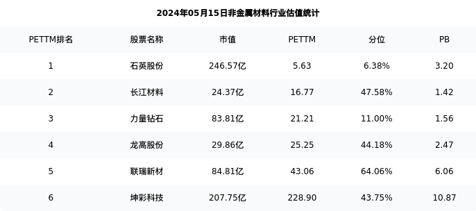 从估值角度看:力量钻石最新市盈率PETTM为21.21,在行业内排名3/7,处于11.00分位。