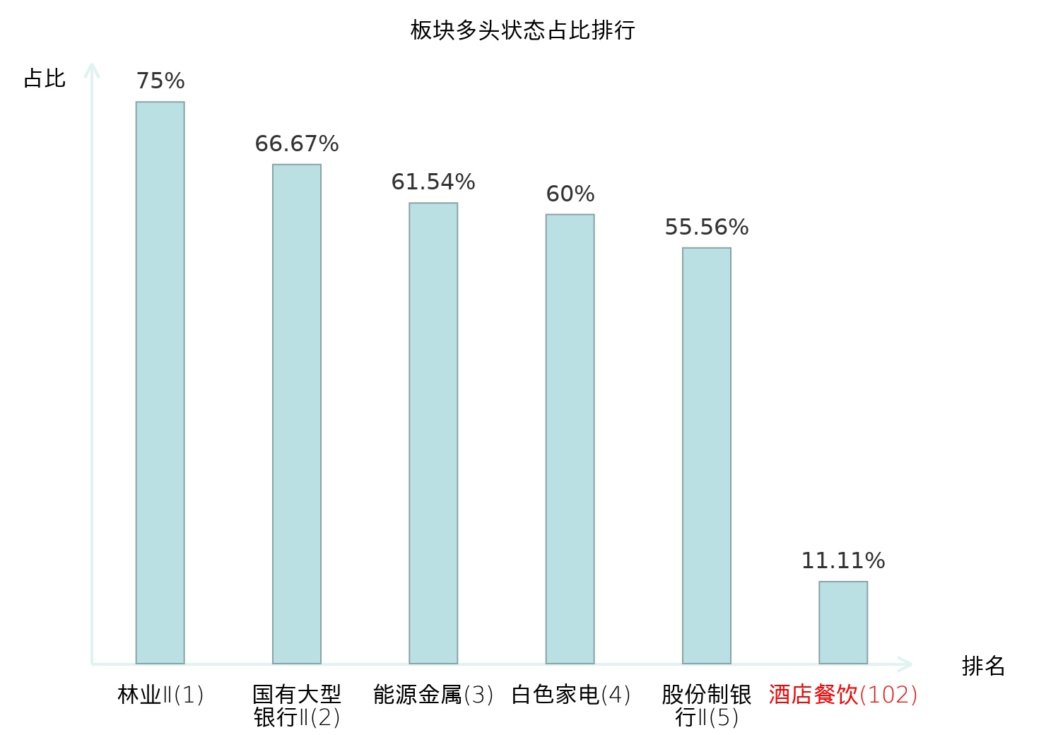 全市场所有行业板块中主力多头状态占比排名中,林业Ⅱ板块位居第一。数字媒体板块名次提升最快,较昨日上升48位。