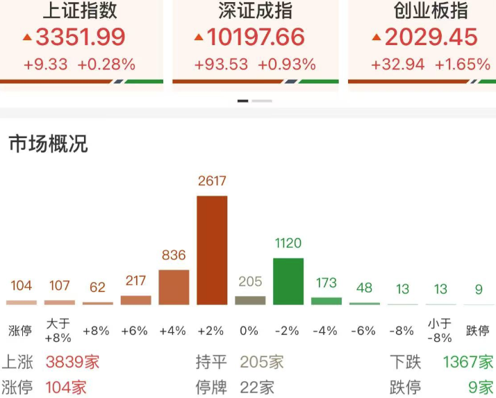 大盘分析及后市展望,周四,A股集体低开,上证指数低开0.34%,深证成指低开0.23%,创业板指低开0.12%。军工、油气小幅高开,PEEK材料、农业股开盘领跌。开盘后,军工股继续活跃,昨日大涨的农业股表现低迷,逆市下跌。昨日表现低迷的AI、算力等板块强势上涨,CPO概念、铜缆高速连接、发电机概念、F5G概念、光模块等板块集体上涨。此外,光伏、锂电等新能源震荡走高。午后,银行板块震荡上行,军工、ST板块掀起涨停潮,百货零售板块拉升,新能源涨幅收窄,股指高位震荡。尽管市场成交量较周三有所萎缩,但赚钱效应明显好转。