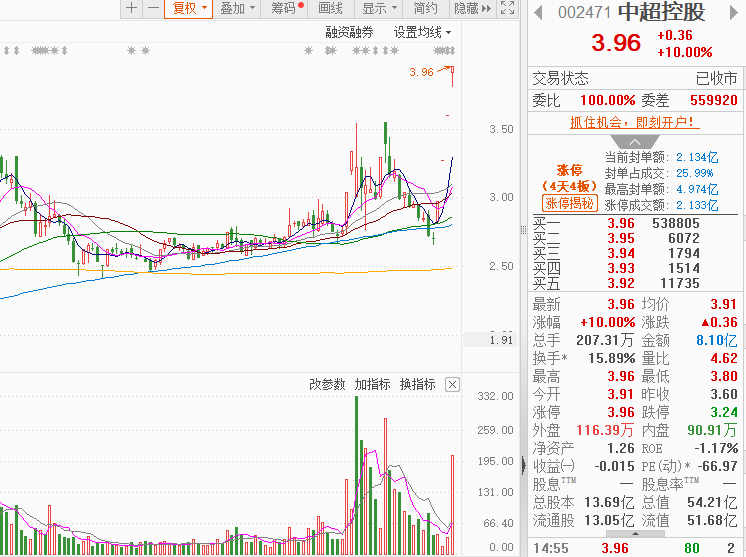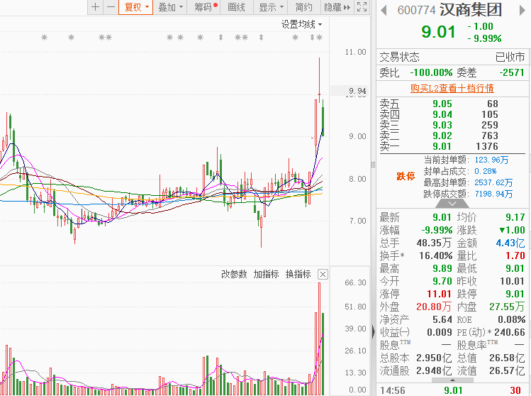 市场情绪:ST板块表现活跃,ST瑞和等近40股涨停,预示着很多亏损企业面临“扭亏为盈”;提振经济复苏和市场情绪,全天盘面低开高走,市场热点快速轮动,个股涨多跌少,全市场超3800只个股上涨。今日共66股涨停,连板股总数14只,23股封板未遂,封板率为74%(不含ST股、退市股)。焦点股方面,市场连板高度被压缩至4连板的润贝航科与中超控股;高位股开始出现明显负反馈,汉商集团、全筑股份、迪生力等跌停,精进电动跌超10%。