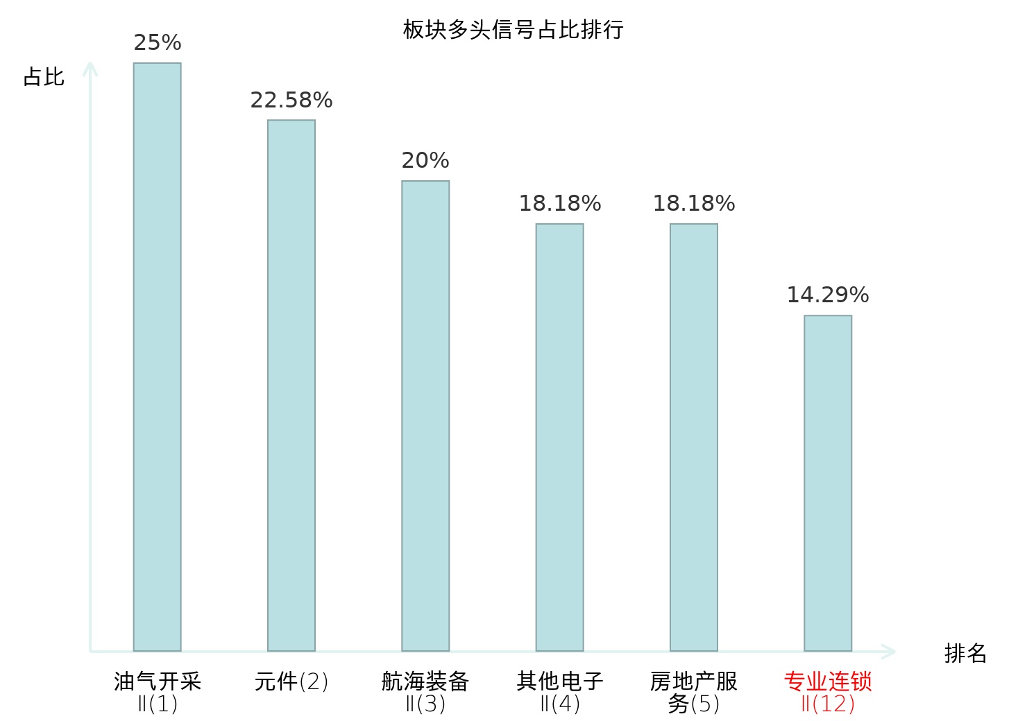 全市场所有行业板块中主力多头信号占比排名中,油气开采Ⅱ板块位居第一。油气开采Ⅱ板块名次提升最快,较昨日上升125位。