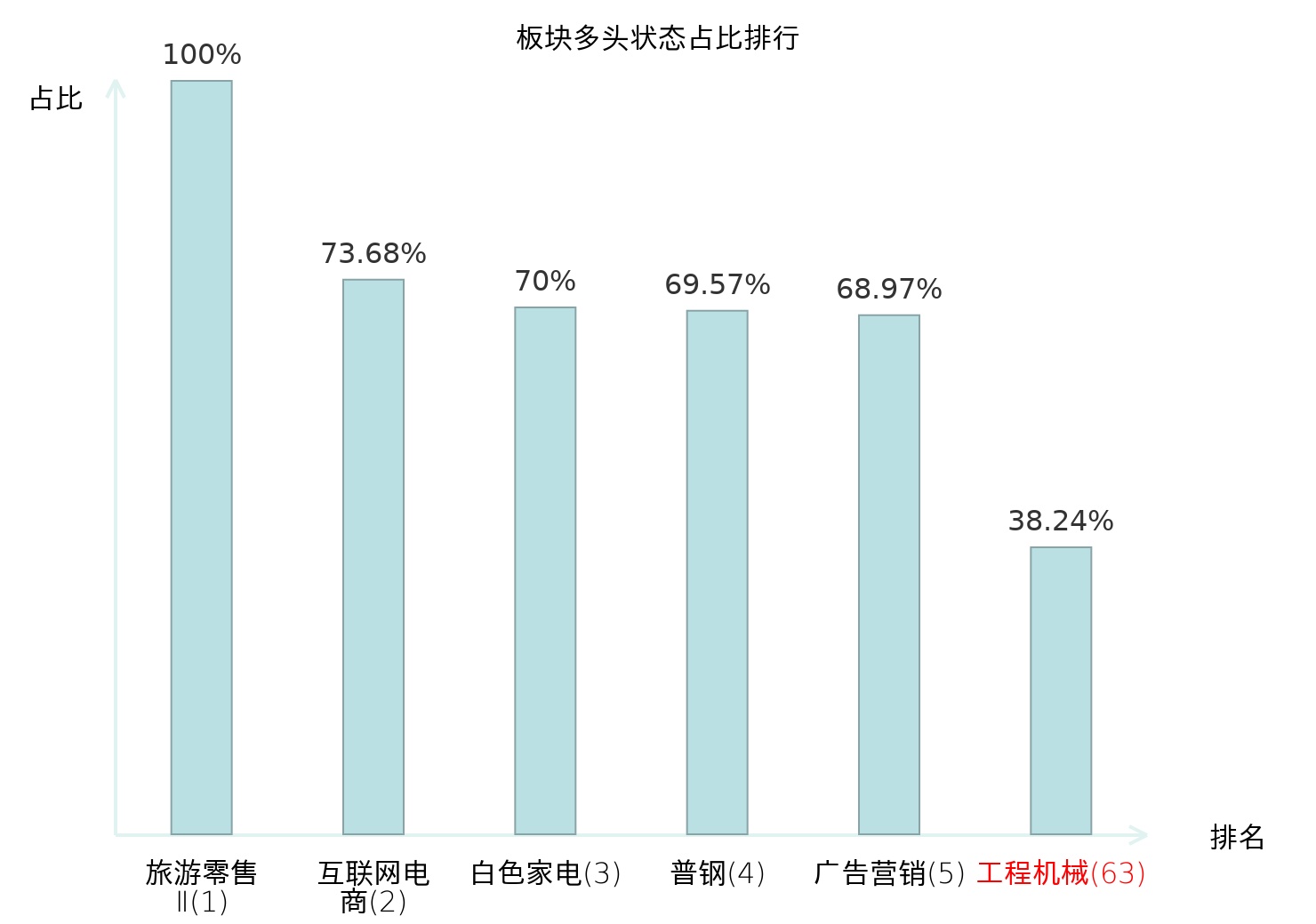 从主力宝信号数据分析,邵阳液压所属的工程机械板块中共13只股票处于主力多头状态,主力多头状态占比在全行业中排名第63位,较昨日上升13位。排名上升表明主力对工程机械板块的看多意愿增强,为投资者关注该板块提供了重要线索。全市场所有行业板块中主力多头状态占比排名中,旅游零售Ⅱ板块位居第一;其他家电Ⅱ板块名次提升最快,较昨日上升66位。这些变动揭示了主力资金在不同行业间的偏好调整,为投资者提供了市场动态和趋势的重要参考。