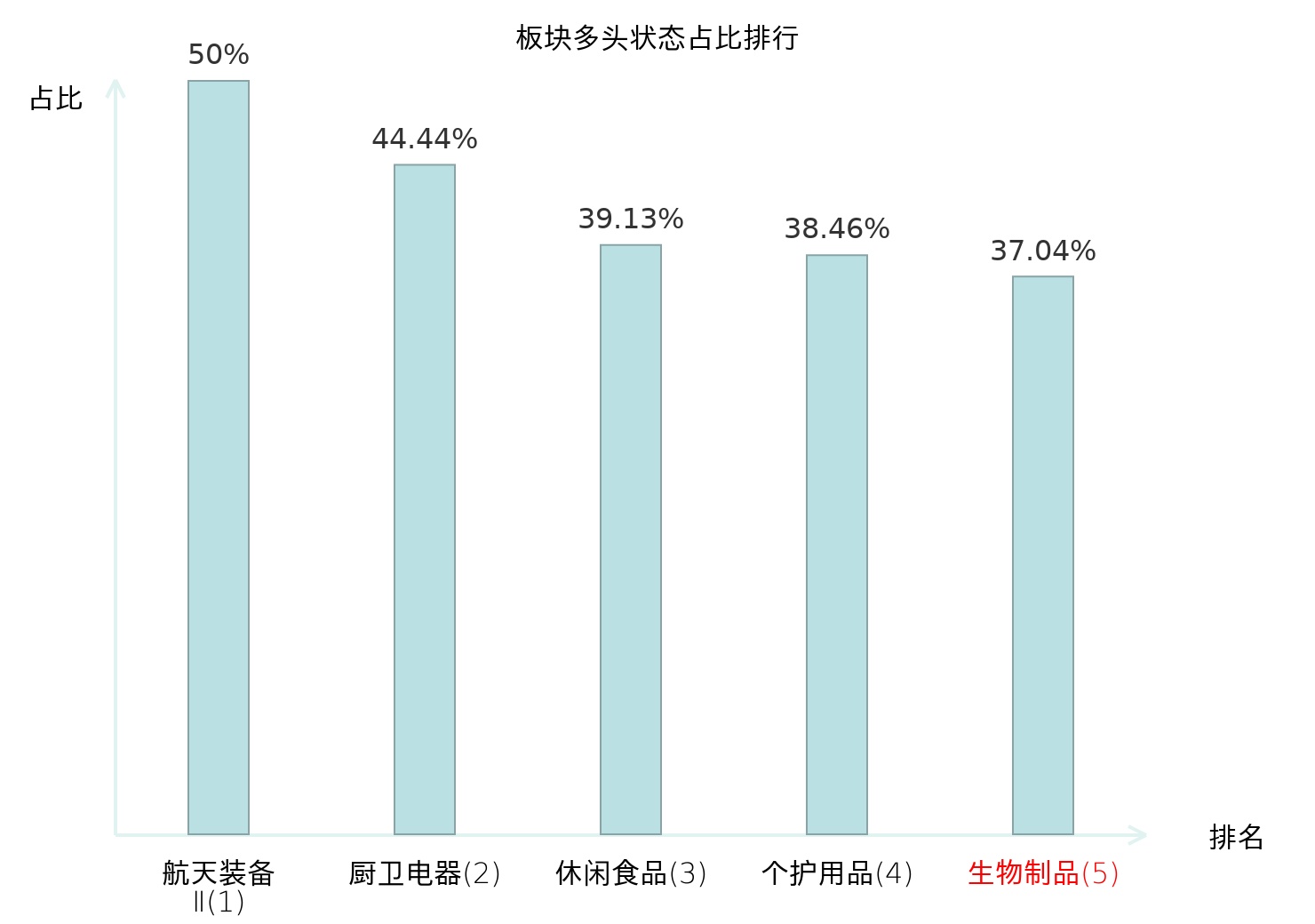 全市场所有行业板块中主力多头状态占比排名中,航天装备Ⅱ板块位居第一。小金属板块名次提升最快,较昨日上升53位。