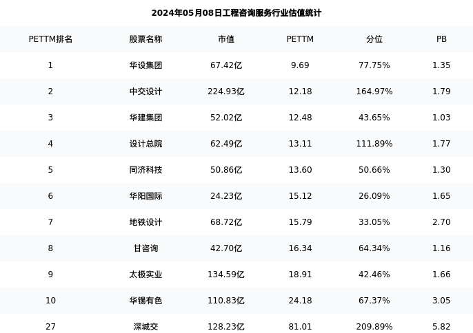 深城交最新报告期数据为一季度,下表汇总了工程咨询服务行业内市值靠前的公司一季度主要经营数据